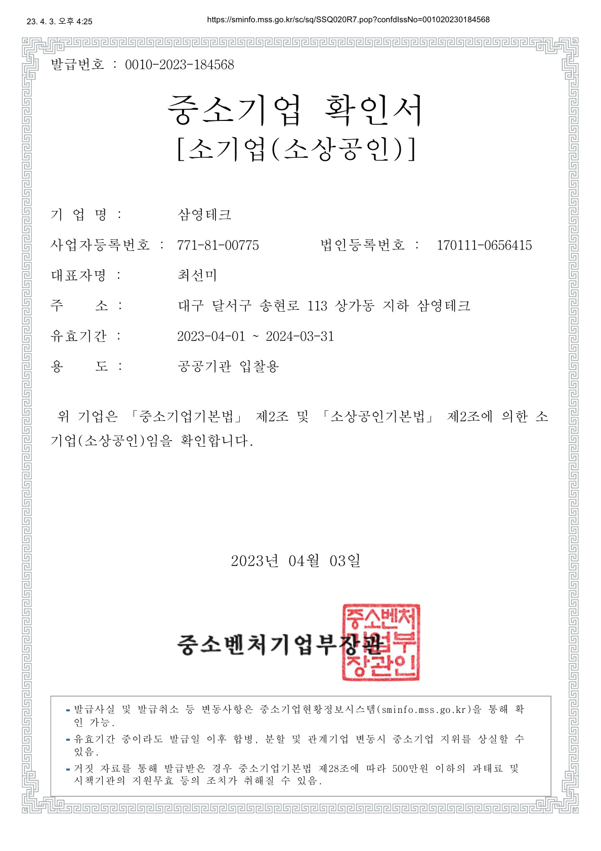 Áß¼Ò±â¾÷È®Àμ